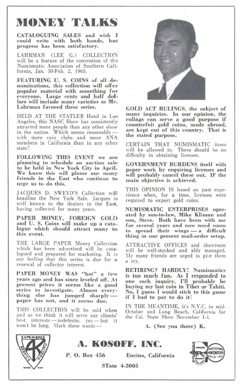 "Money Talks"- from "The Numismatist," October 1962.