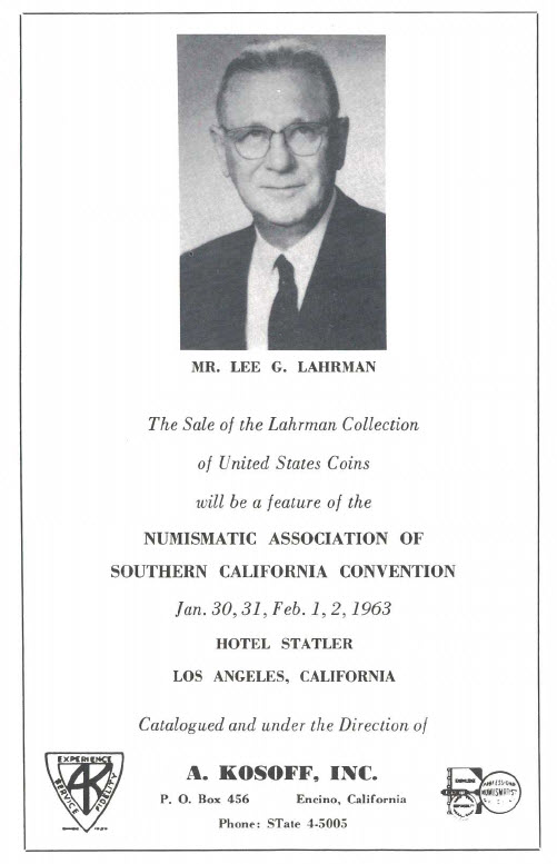 Beginning in the autumn of 1962, announcements were made concerning the forthcoming sale of the Lahrman Collection. ("The Numismatist," November 1962)