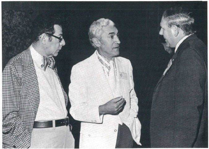 At an annual congress of the International Association of Professional Numismatists in the 1970s, Richard Picker looks on while Abe Kosoff talks with Donald Crowther.