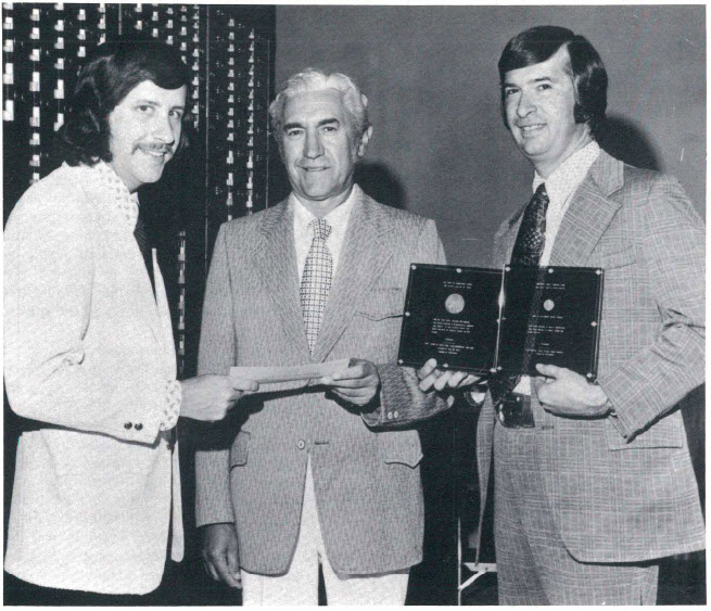 Taken in October 1972, this photograph documents the sale of the 1804 silver dollar and the 1913 Liberty Head nickel by Abe Kosoff to World-Wide Coin Investments for $180,000. Representing World-Wide are John Hamrick (to the left) and, to the right, Warren Tucker, while Abe Kosoff, center, accepts the check.