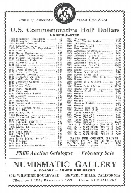 In the February issue of Numismatic Gallery Monthly Abe Kosoff philosophized: