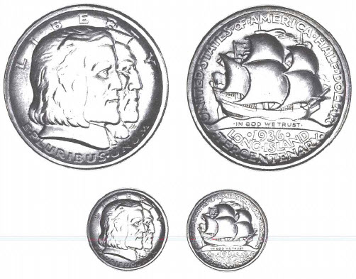 In the year 1636 the first white settlement was established on Long Island at Jamaica Bay, an event which was memorialized 300 years later by the Tercentenary celebration. The Long Island Tercentenary Committee helped formulate a congressional resolution which was signed into law on April 13, 1936, and which provided for up to 100,000 silver half dollars of a "single design" to be coined at "a mint," thus prohibiting a multiplicity of exploitative variations. Congress was becoming wise!