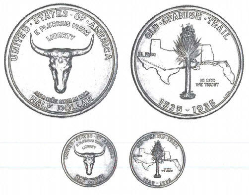 The 1935 Old Spanish Trail half dollar represents another instance of an issue primarily designed for the exploitation of coin collectors. L.W. Hoffecker, who was to keep his fences mended by investigating later abuses of commemorative half dollars on behalf of the American Numismatic Association and to serve as president of the ANA 1939-1941, was the originator of this promotion. Throughout the 1930s Hoffecker was extremely successful in diverting attention away from himself, so that criticisms directed toward the Hudson half dollar, the Boone pieces, and others did not fall on his shoulders as well. However, the situation can also be considered in the light that in 1935 collectors were fair game and that Hoffecker was simply trying to make a profit, the desire of many businessmen.