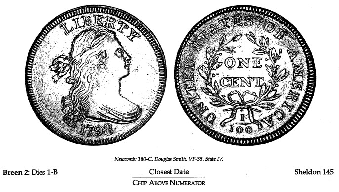 VF-25 Walter Garrabrant, 1922 • Henry C. Hines • Homer K. Downing, privately • Dr. William H. Sheldon • Dorothy Paschal, 1972 • Robinson S. Brown, Jr. • Superior Galleries 9/1986: 207 $715 • David Liljestr and (Dave's Coin & Stamp Co.) • James W. Bethe (Valley Coin & Stamp Co.) • Dr. Philip W. Ralls • C. Douglas Smith, 3/30/1992 • Eric Streiner • Superior Galleries 10/1992: 88 $770 • Dr. Philip W. Ralls. Reverse illustrated in Early American Cents and in Penny Whimsy.
