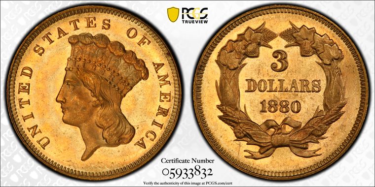 View all auction prices realized for 1880 $3 coins