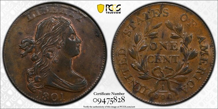 View all auction prices realized for 1801 1C coins