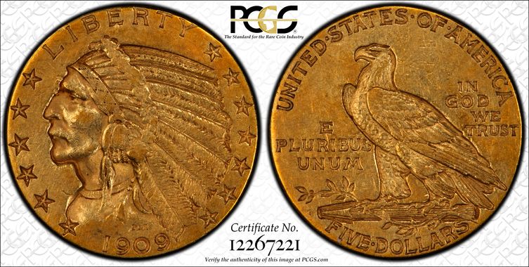 View all auction prices realized for 1909-O $5 coins