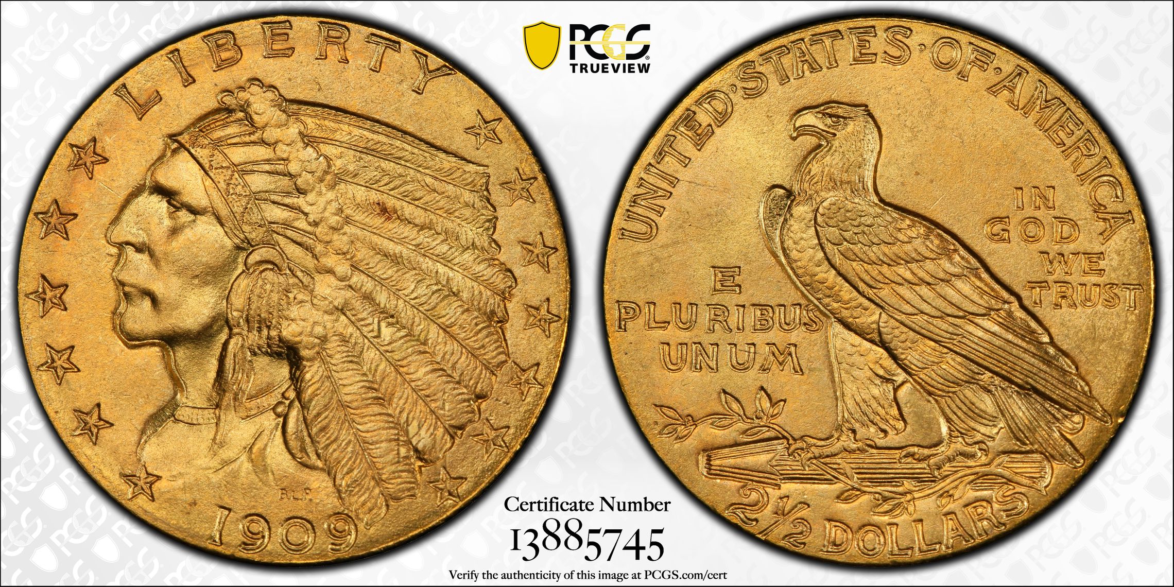 View all auction prices realized for 1909 $2.50 coins
