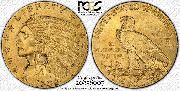View a Set Registry collection that includes a 1908 $2.50 coin: