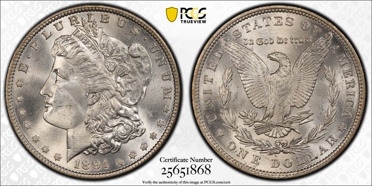 View all auction prices realized for 1891 $1 coins