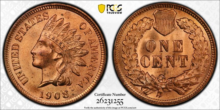 View all auction prices realized for 1908 1C coins