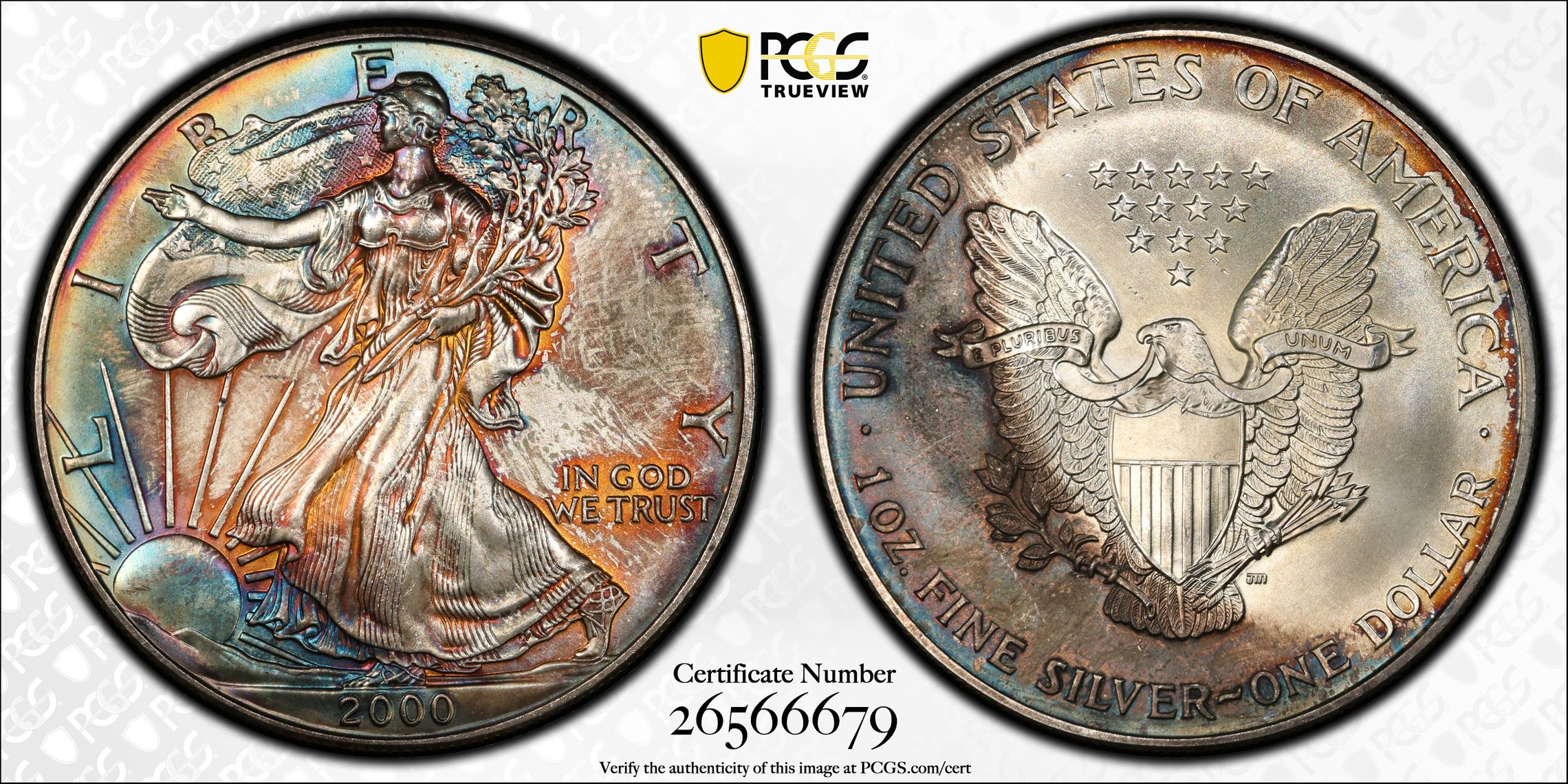 Verification of certification numbers on the PCGS Certification Database does not eliminate the risk of buying counterfeit and altered coins. Though uncommon, counterfeiters may also counterfeit PCGS grading inserts using actual certification numbers derived from public sources.