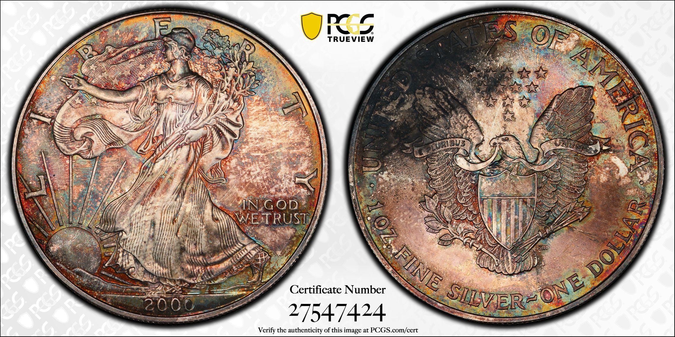 Verification of certification numbers on the PCGS Certification Database does not eliminate the risk of buying counterfeit and altered coins. Though uncommon, counterfeiters may also counterfeit PCGS grading inserts using actual certification numbers derived from public sources.