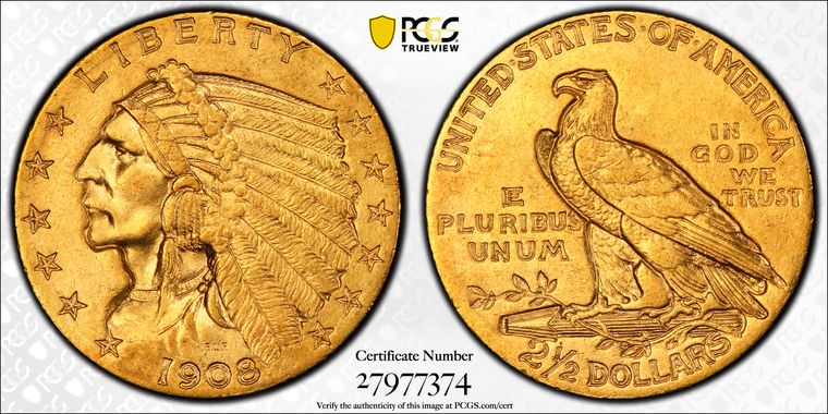 View a Set Registry collection that includes a 1908 $2.50 coin:
