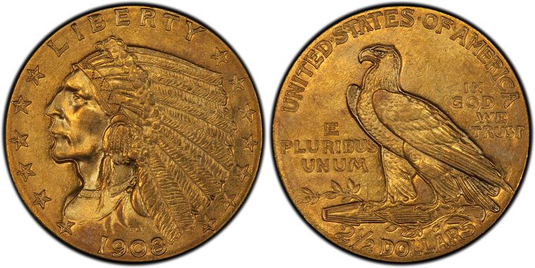 View all auction prices realized for 1908 $2.50 coins