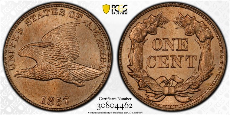 View all auction prices realized for 1857 1C coins