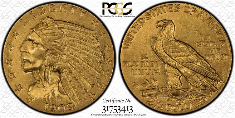 View a Set Registry collection that includes a 1908 $2.50 coin: