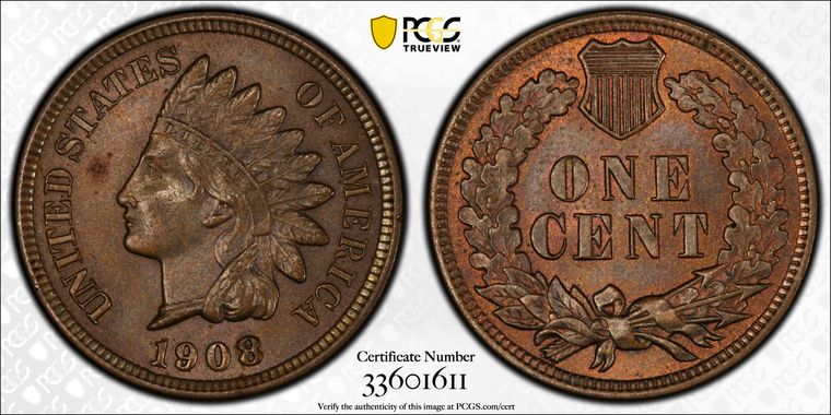 View all auction prices realized for 1908 1C coins