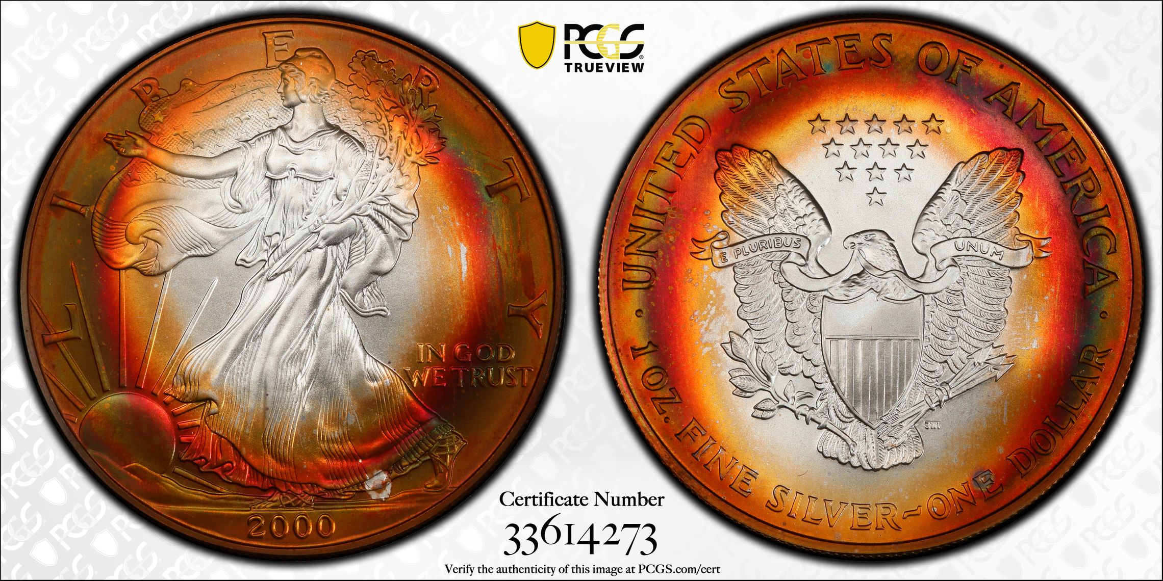 Verification of certification numbers on the PCGS Certification Database does not eliminate the risk of buying counterfeit and altered coins. Though uncommon, counterfeiters may also counterfeit PCGS grading inserts using actual certification numbers derived from public sources.