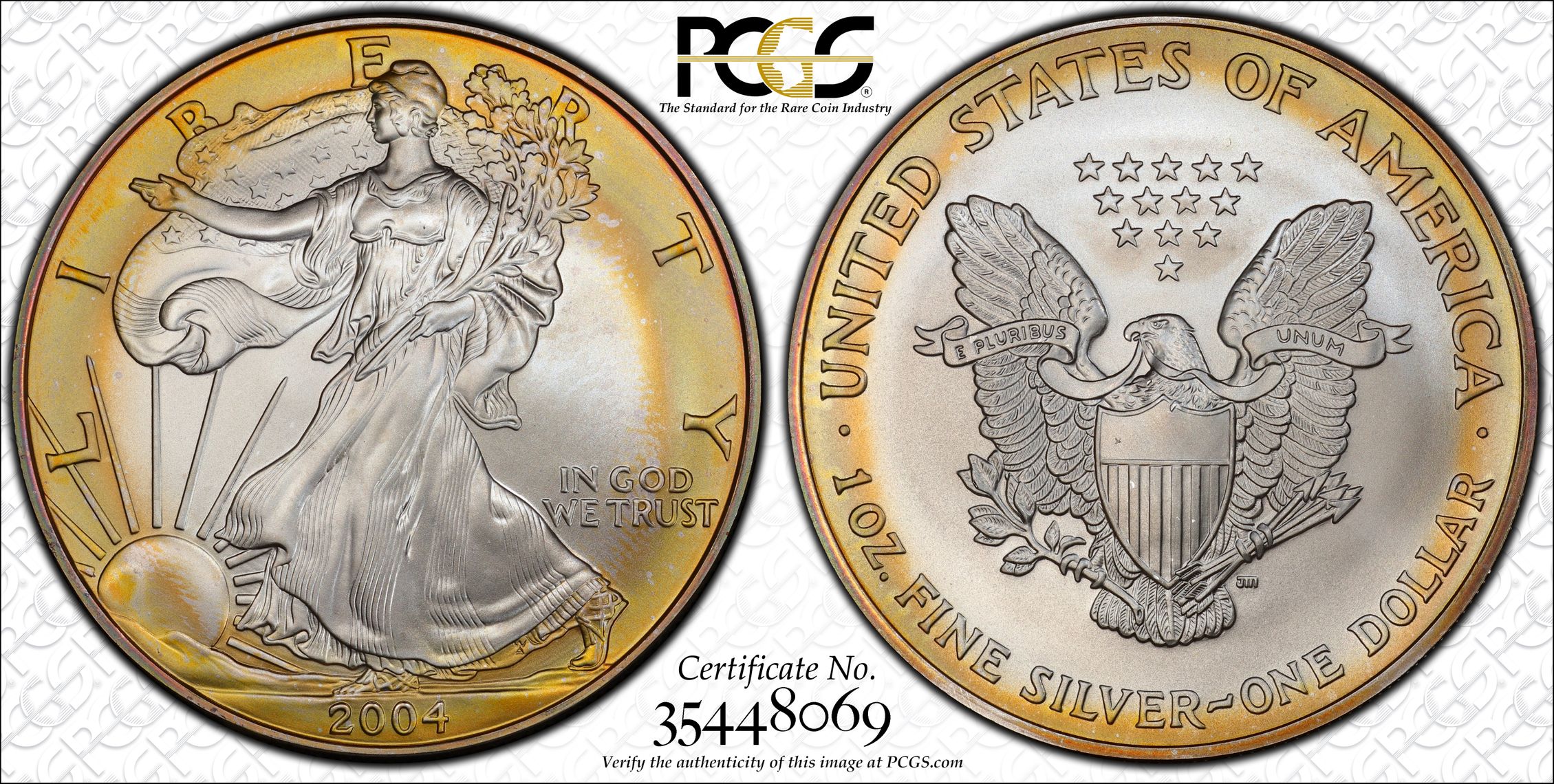 Verification of certification numbers on the PCGS Certification Database does not eliminate the risk of buying counterfeit and altered coins. Though uncommon, counterfeiters may also counterfeit PCGS grading inserts using actual certification numbers derived from public sources.
