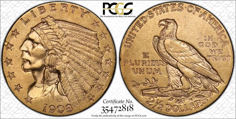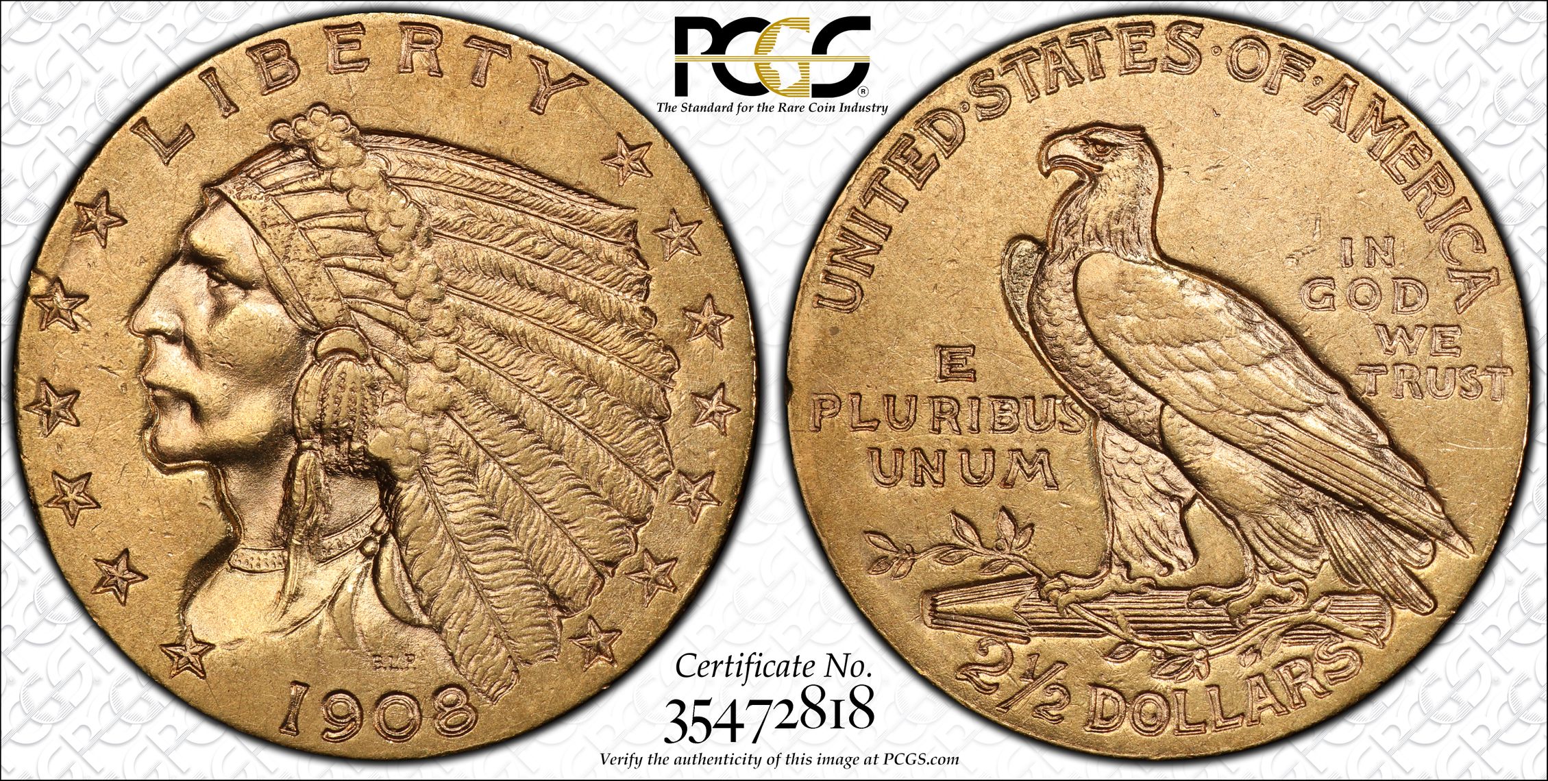 View a Set Registry collection that includes a 1908 $2.50 coin:
