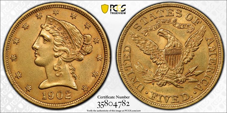 View all auction prices realized for 1902 $5 coins