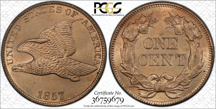 View all auction prices realized for 1857 1C coins