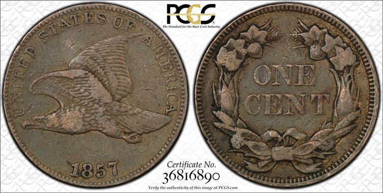 View all auction prices realized for 1857 1C coins