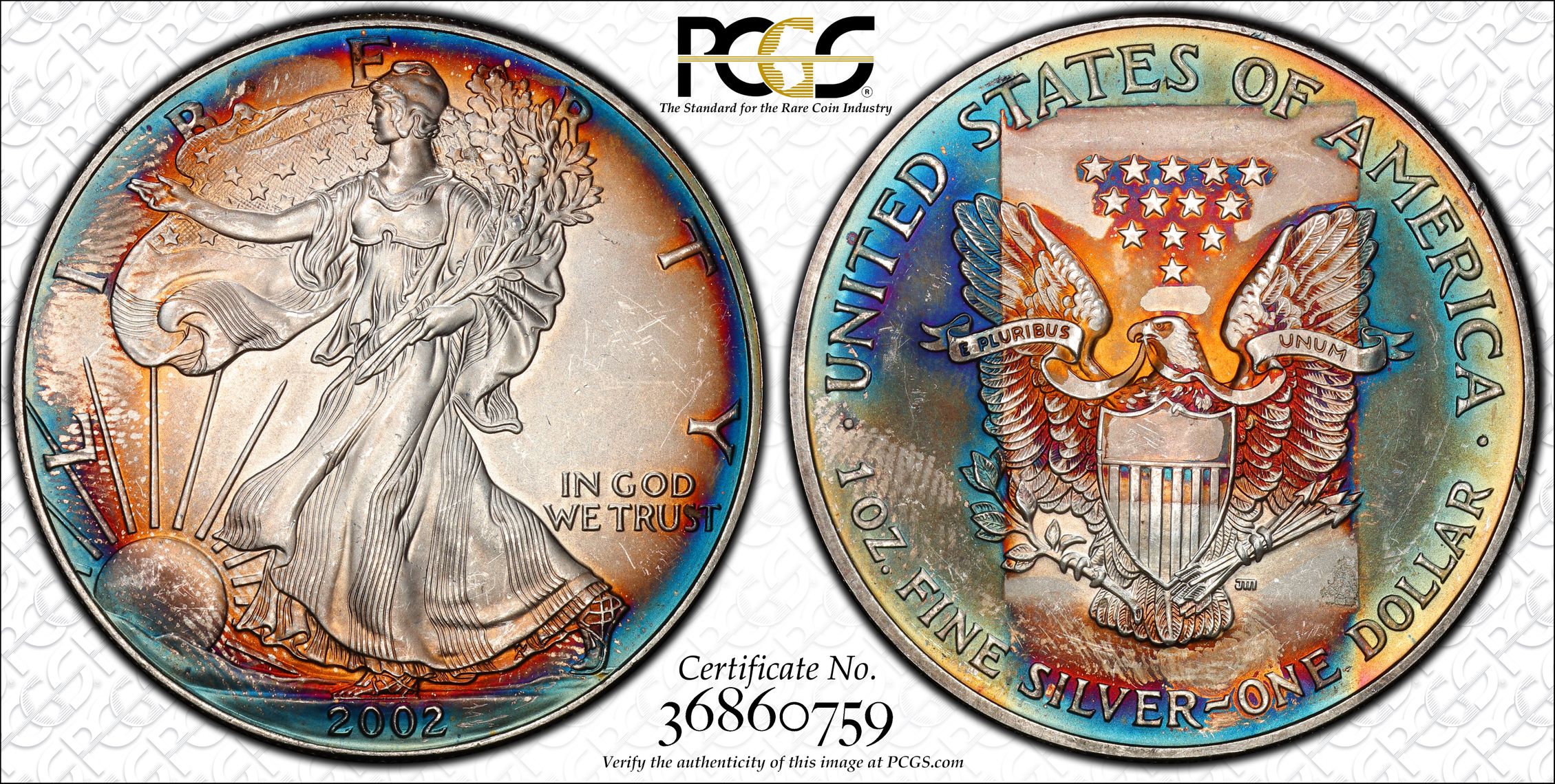 Verification of certification numbers on the PCGS Certification Database does not eliminate the risk of buying counterfeit and altered coins. Though uncommon, counterfeiters may also counterfeit PCGS grading inserts using actual certification numbers derived from public sources.