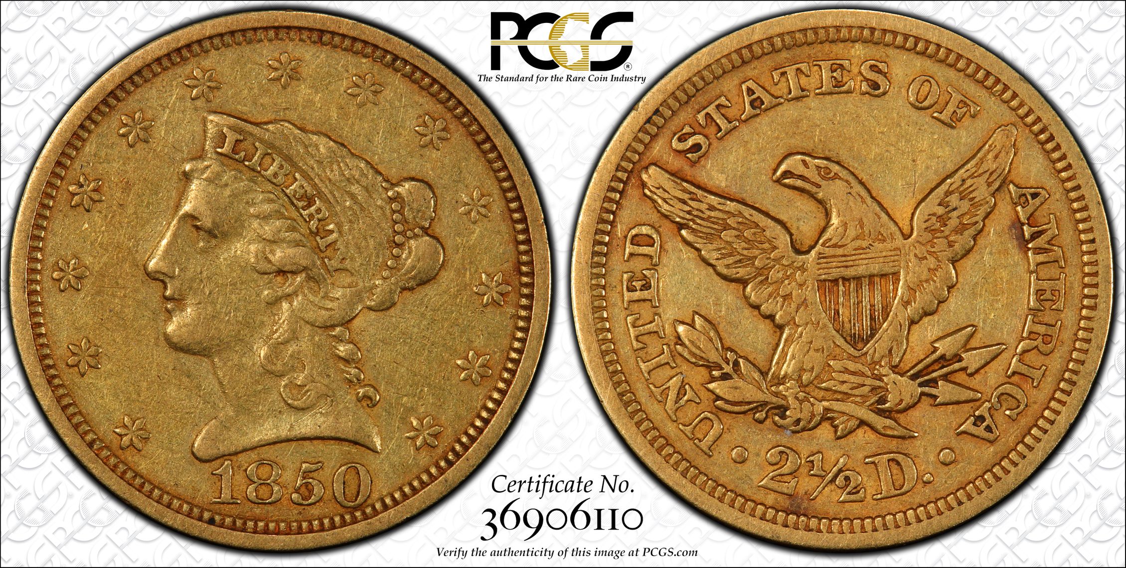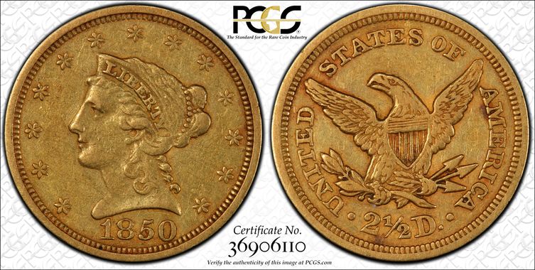 View all auction prices realized for 1850 $2.50 coins
