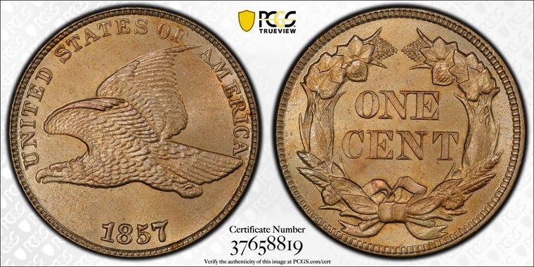 View all auction prices realized for 1857 1C coins
