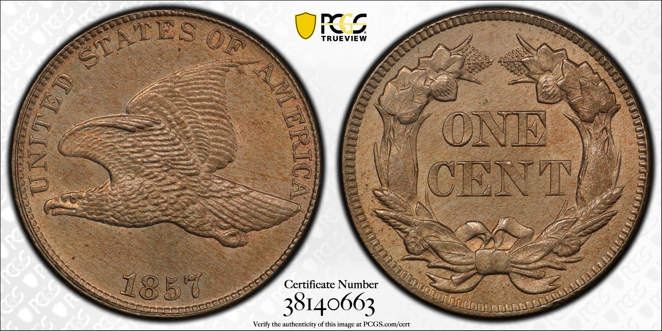 View all auction prices realized for 1857 1C coins