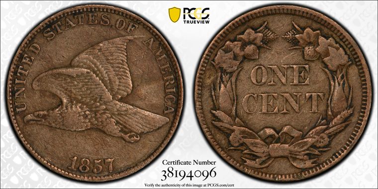 View all auction prices realized for 1857 1C coins