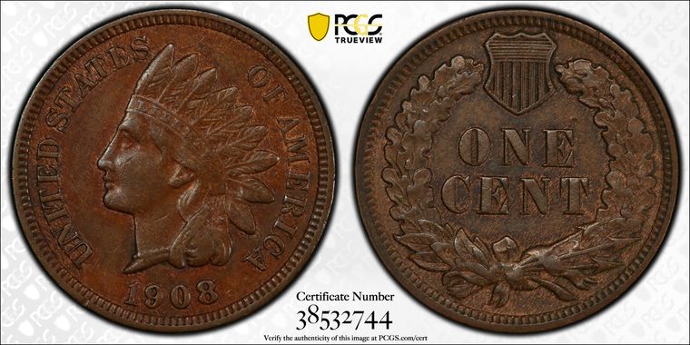 View all auction prices realized for 1908 1C coins