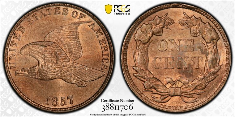View all auction prices realized for 1857 1C coins