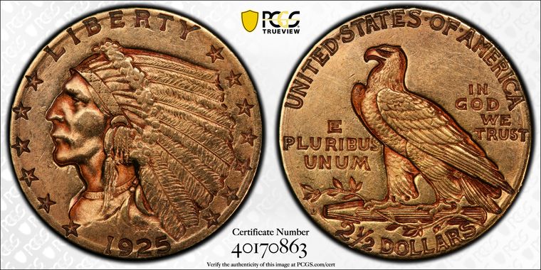 View all auction prices realized for 1925-D $2.50 coins