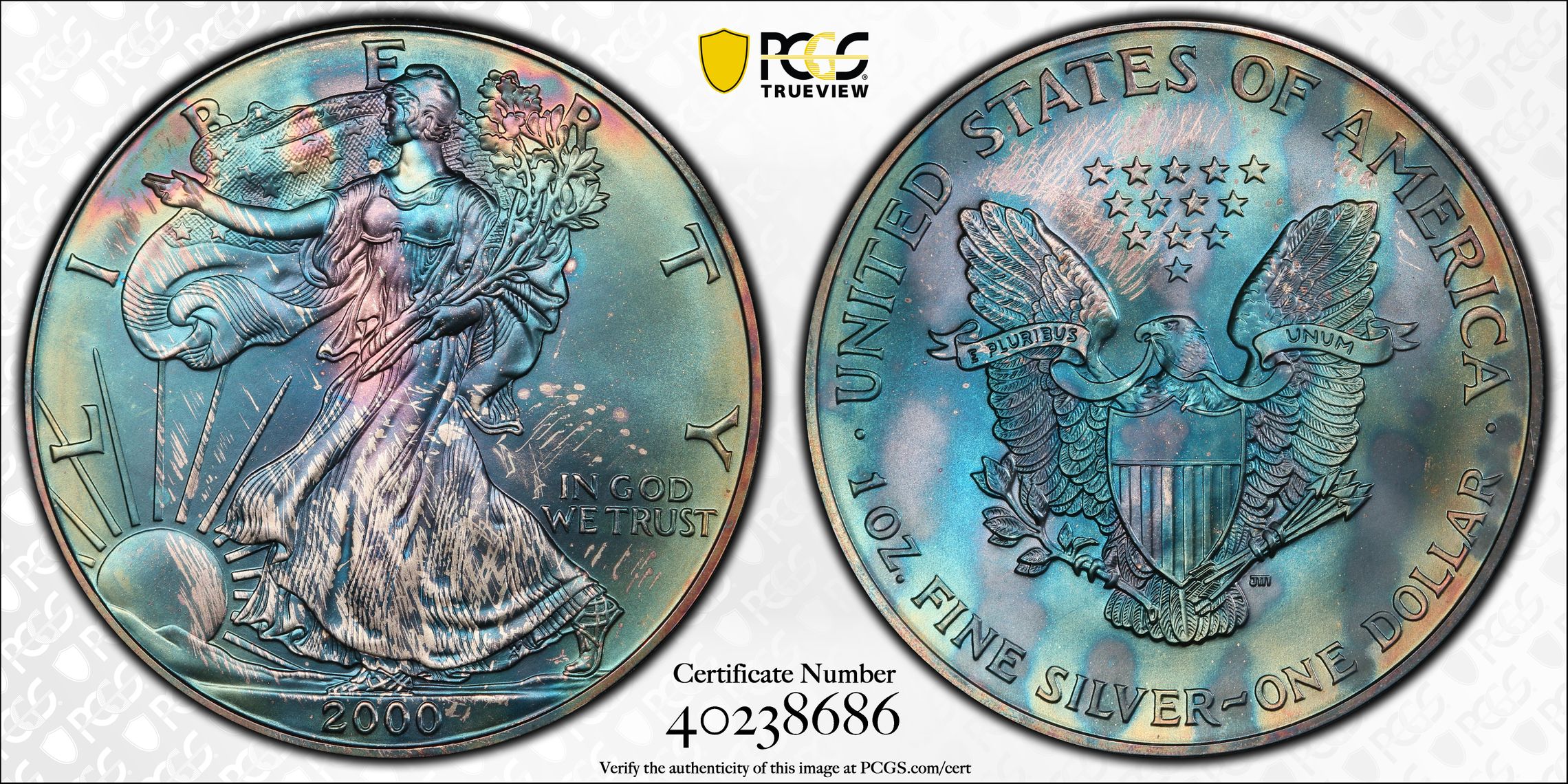 Verification of certification numbers on the PCGS Certification Database does not eliminate the risk of buying counterfeit and altered coins. Though uncommon, counterfeiters may also counterfeit PCGS grading inserts using actual certification numbers derived from public sources.