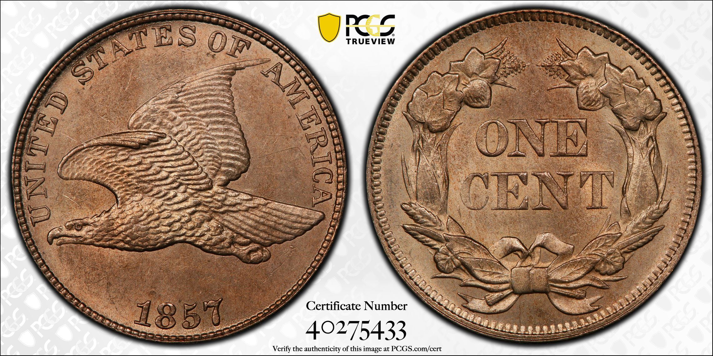 View all auction prices realized for 1857 1C coins