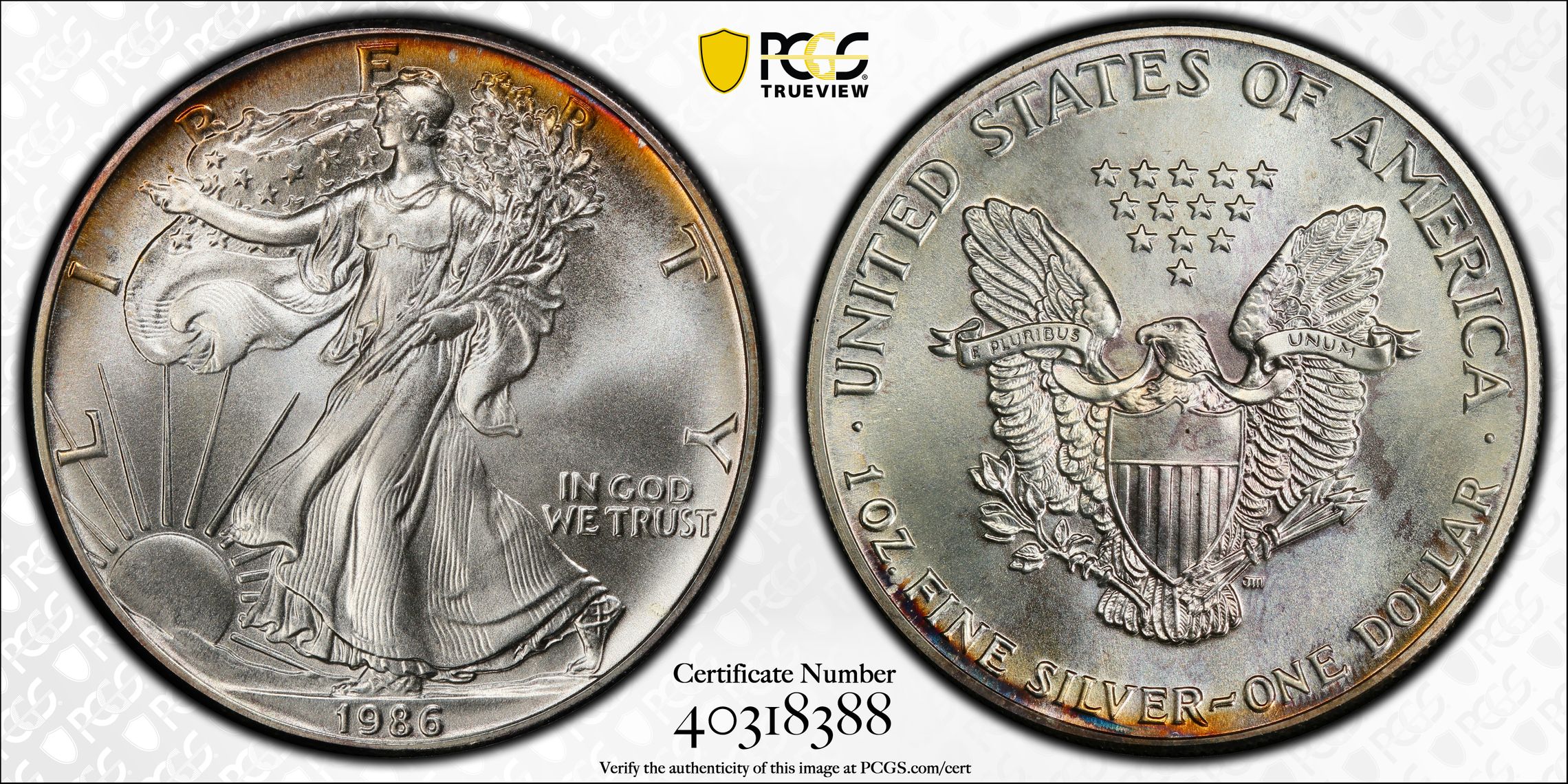 Verification of certification numbers on the PCGS Certification Database does not eliminate the risk of buying counterfeit and altered coins. Though uncommon, counterfeiters may also counterfeit PCGS grading inserts using actual certification numbers derived from public sources.