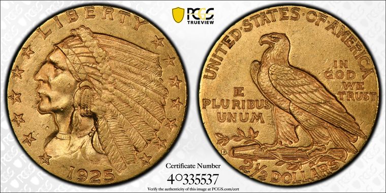 View all auction prices realized for 1925-D $2.50 coins