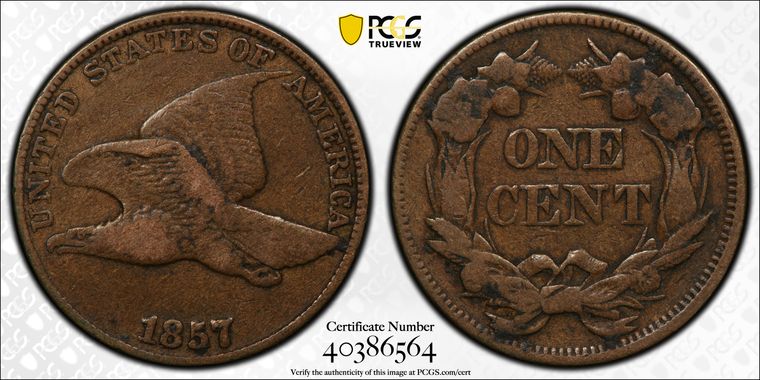 View all auction prices realized for 1857 1C coins
