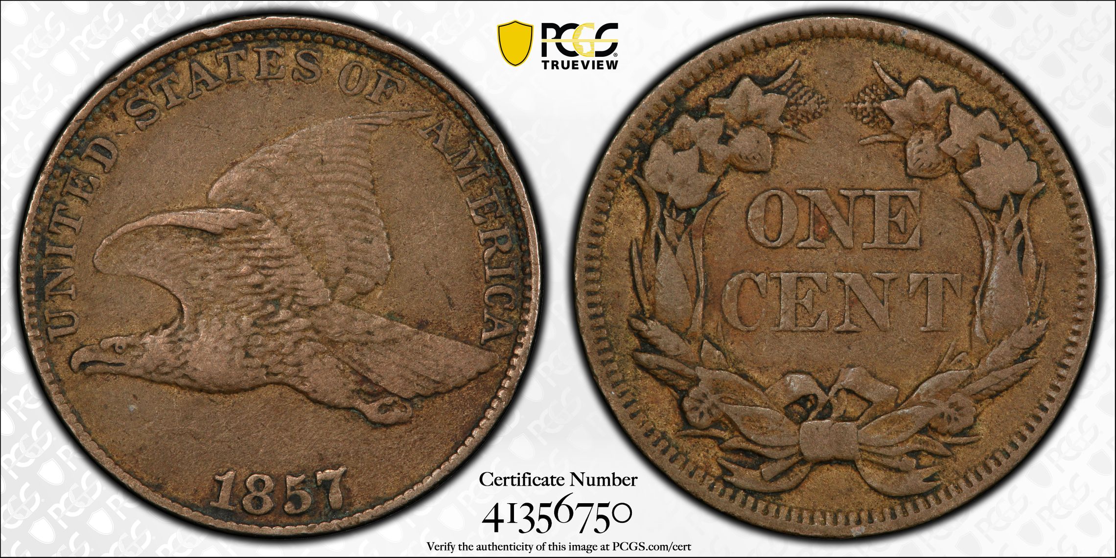 View all auction prices realized for 1857 1C coins