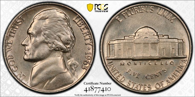 View all auction prices realized for 1963 5C coins