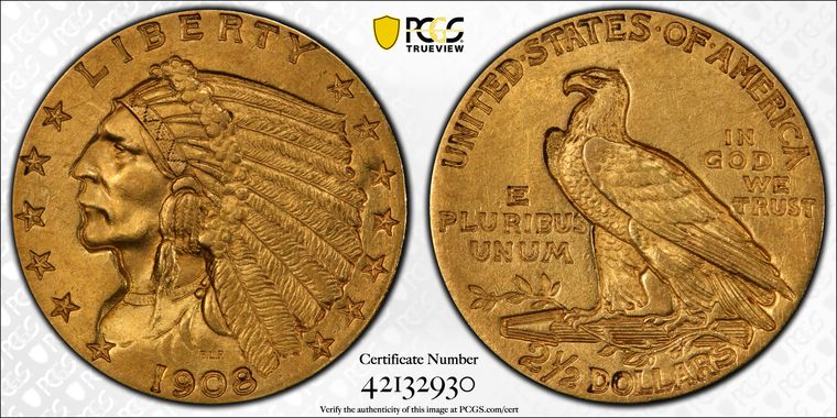 View all auction prices realized for 1908 $2.50 coins