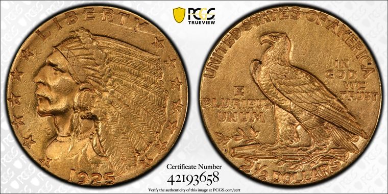 View all auction prices realized for 1925-D $2.50 coins