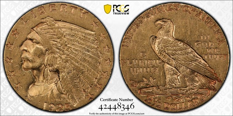 View all auction prices realized for 1925-D $2.50 coins