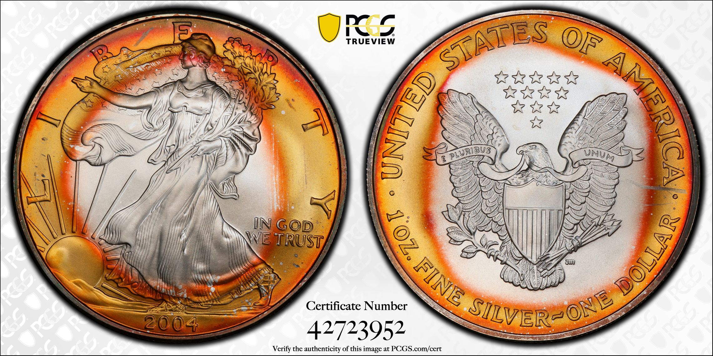 Verification of certification numbers on the PCGS Certification Database does not eliminate the risk of buying counterfeit and altered coins. Though uncommon, counterfeiters may also counterfeit PCGS grading inserts using actual certification numbers derived from public sources.