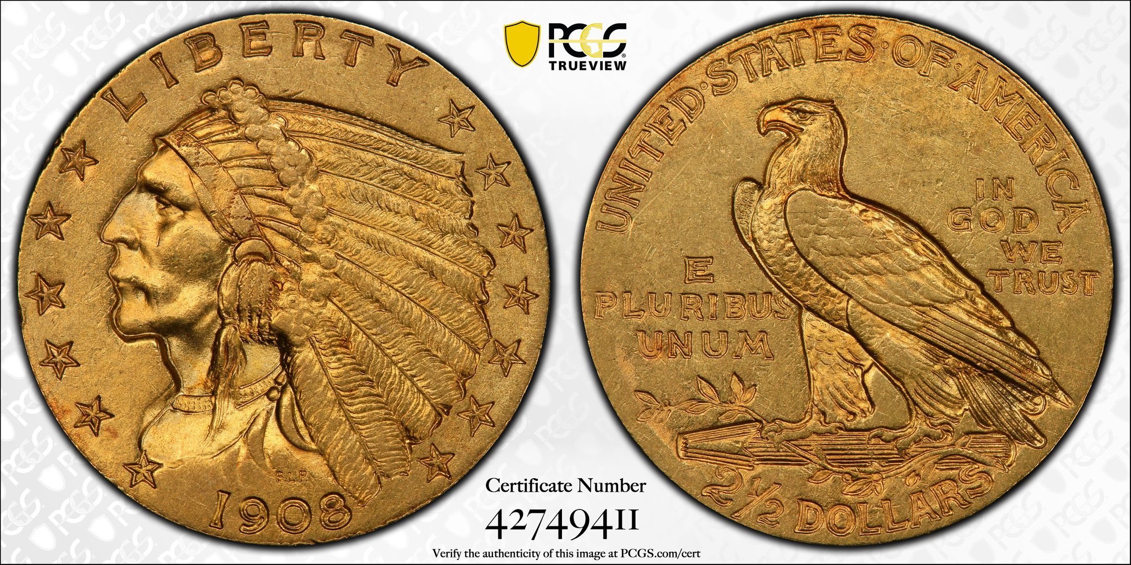 View a Set Registry collection that includes a 1908 $2.50 coin: