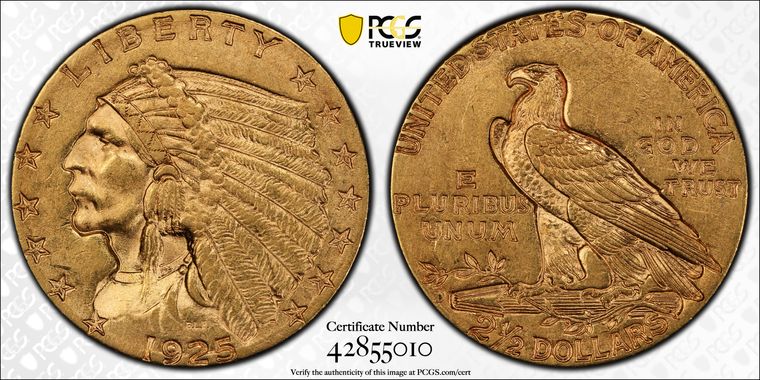 View all auction prices realized for 1925-D $2.50 coins