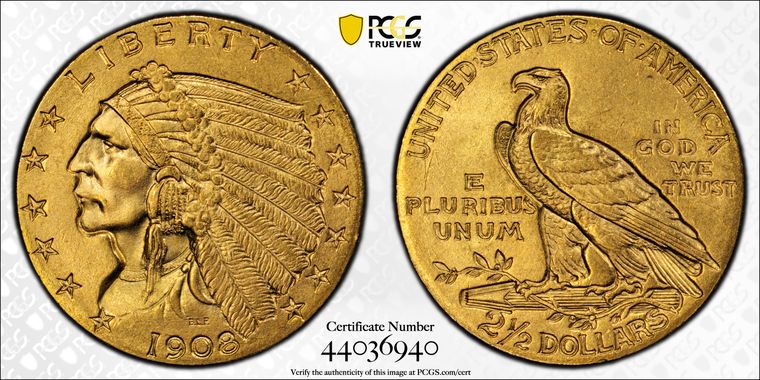 View a Set Registry collection that includes a 1908 $2.50 coin: